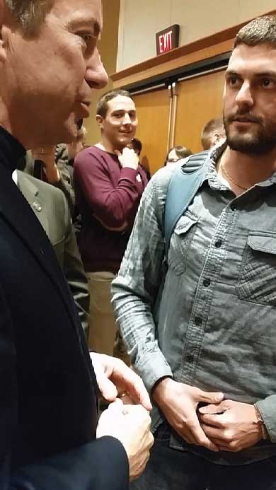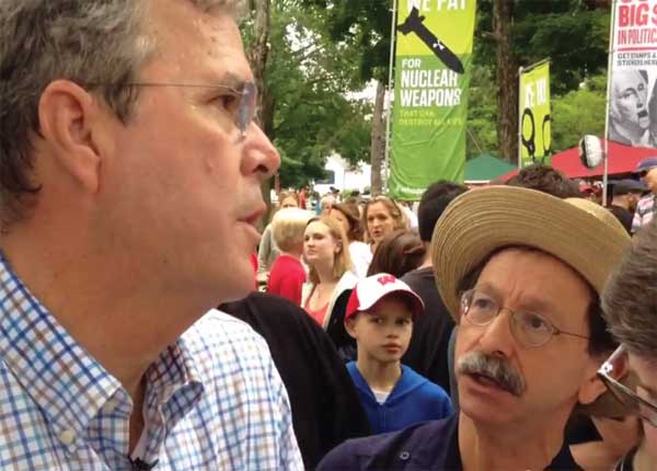 These experiences have been repeated by GUI volunteers throughout this caucus and primary season. One volunteer asked Donald Trump how he was going to “prevent corporate cronyism from corrupting our government.” Another asked Martin O’Malley about Pope Francis’s recent call to end the nuclear arms race and how he was going to address huge profits made by weapons contractors. A bird dog asked Scott Walker how small businesses were supposed to compete with the lobbying power of Pentagon contractors, while yet another asked Chris Christie about government plans to expand our nuclear weapons capabilities. (To see how presidential candidates have answered these and other questions, visit our website at afsc.org/gui.)