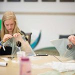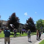 También aprendemos a hacer varios nudos en la primera parte de la semana. (Esto, por supuesto, también tiene metáforas en la vida). Al aprenderlos al principio de la semana, podemos usarlos a lo largo de la semana mientras hacemos las otras cometas. Hemos hecho cometas delta, “flotadores” de interior hechos con bolsas de la tintorería, cometas Rokkaku (cometas hexagonales japonesas), cometas de caja y cometas de combate. Normalmente diseño mis talleres para que las cometas que hacemos puedan ser voladas en interiores o con vientos muy ligeros, porque normalmente estamos cerca de edificios y árboles que crean condiciones turbulentas. Nuestras cometas pueden ser voladas en interiores simplemente caminando hacia atrás, pero luego pueden ser reconstruidas con palos más pesados para volar con vientos más fuertes cuando los participantes lleguen a casa. También diseño las cometas para que puedan ser desmontadas para que puedan ser llevadas a casa de forma segura. Y normalmente hay tiempo para decorar las cometas usando rotuladores permanentes de colores o pinturas acrílicas. Siempre intentamos sacar tiempo para volarlas también.