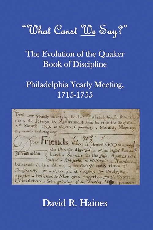 Una breve reseña no puede hacer justicia a la complejidad de la obra de David Haines. El volumen más corto es una recreación de una obra que antes solo existía en manuscrito: el “Testimonio General” de 1704 emitido por el Philadelphia Yearly Meeting. A muchos Amigos liberales de hoy les resultará inquietante su biblicismo y su cristianismo explícito. La obra más extensa examina cómo evolucionó el Libro de la Disciplina entre 1715 y 1755, centrándose en el desarrollo de las preguntas, el lento movimiento del Meeting anual para prohibir la posesión de esclavos y el papel de las mujeres en los Meetings de negocios.
