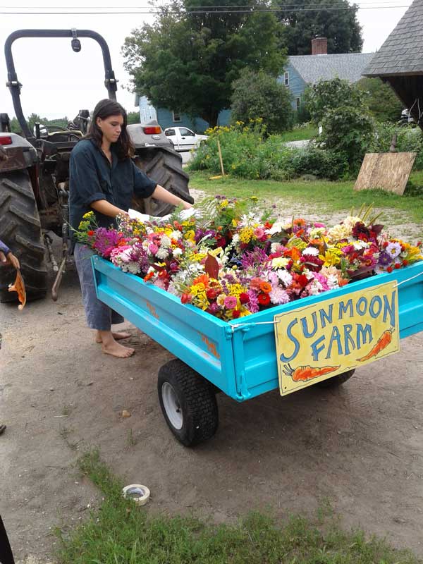 Estoy más interesado en animar a Friends a buscar un alto valor con sus compras de alimentos. Desde hace algunos años, hemos estado diciendo que la comunidad es nuestro principal cultivo, y hemos comenzado a animar a los clientes a pensar en la comida como solo uno de los muchos beneficios que obtienen cuando eligen apoyar una granja comunitaria. Además de proporcionar productos orgánicos de alta calidad, Sun Moon Farm organiza una cena semanal compartida, una fiesta en el granero en el verano y un culto a la luz de las velas en el solsticio de invierno. Hemos convertido la parte delantera de nuestro granero en una biblioteca, y ese espacio físico, y la ocasión de ver a los vecinos en la recogida de la ASC, ha hecho de Sun Moon Farm un valioso centro comunitario en nuestra zona rural. También hago entregas a amigos en Cambridge, Massachusetts, y mi relación con una comunidad de cohousing allí ha permitido una experiencia similarmente conectada para nuestros clientes de la ciudad. (¡Ver abajo!)