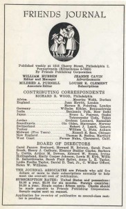 El actual Friends Journal sucede a The Friend, publicado continuamente desde 1827, y a Friends Intelligencer, publicado desde 1944. La fusión de los dos Philadelphia Yearly Meetings a principios de este año y los desarrollos en otros Eastern Yearly Meetings han dado tanta visión a esta empresa como el nuevo sentido de unidad en el cuaquerismo estadounidense resultante de la Conferencia Mundial de Oxford de 1952. Creemos que nuestro testimonio religioso, así como nuestros testimonios por la paz, la reconciliación social y racial, requieren una vigorosa expresión periodística. El