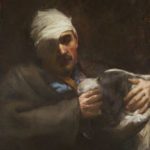 The showstopper is a huge 1919 canvas by the famed society painter John Singer Sargent, who is best known for his lush handling of silk gowns on beautiful women. Here, near the end of the exhibit, Sargent uses a muted gold palette to paint a troupe of blindfolded soldiers walking toward medical help after being gassed. At their feet are fallen comrades either dead or writhing in pain. In the distance, between their trudging legs, a pick-up soccer game is going on among survivors, as life always goes on. This tour de force of suffering and life is immediately followed by a tender 1917 painting by Susan Macdowell Eakins, Thomas Eakins’ accomplished wife, of a man with a bandaged head fondling a dog—so homey, so sad.