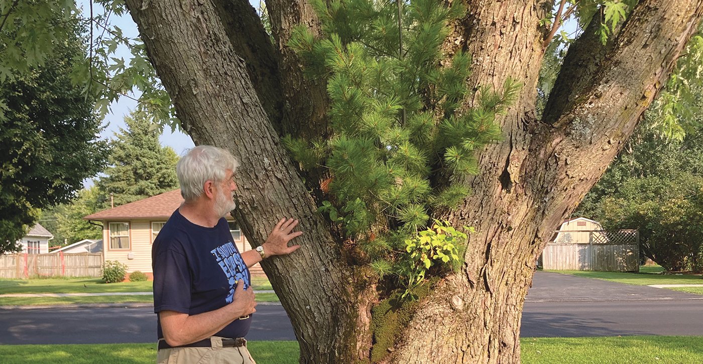 The author talking to the sugar maple and its inhabitants. Photo by Barbara Burdick.