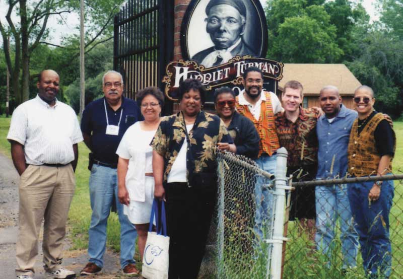 A group of Friends of color visit the Harriet Tubman Home in Auburn, N.Y., during the 2000 FGC Gathering.